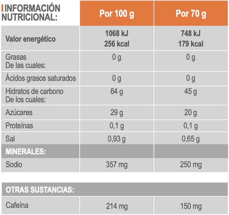 La relación de carbohidratos 1.0:0.8 favorece una rápida asimilación y una mejor tolerancia digestiva, mientras que el sodio ayuda a reponer los electrolitos perdidos con el sudor. Por su parte, la cafeína mejora el enfoque mental y proporciona un impulso extra de energía cuando más lo necesitas.